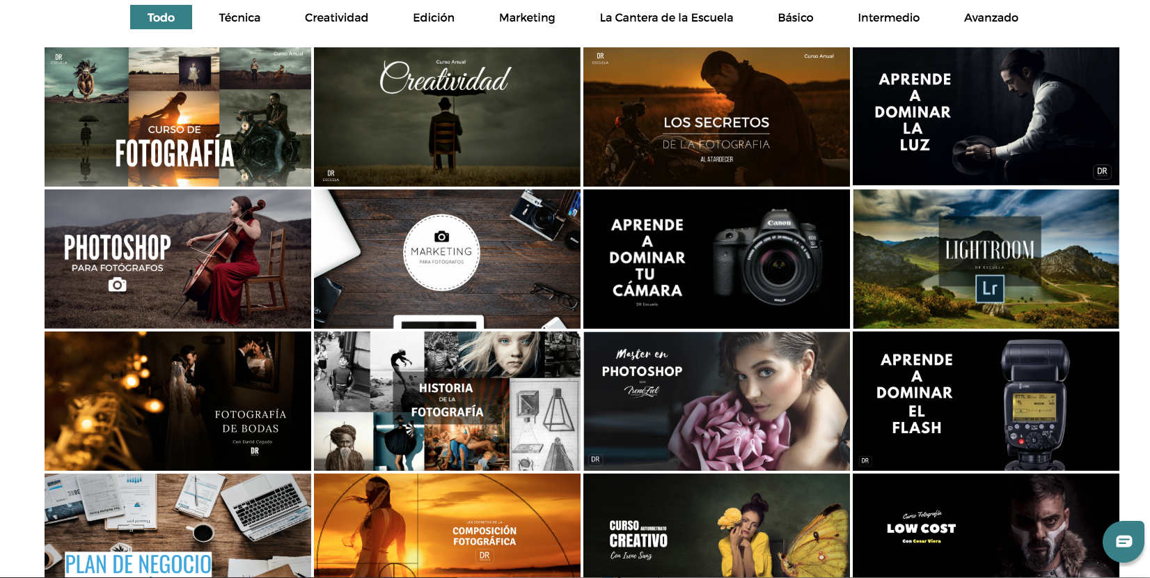 En DR Escuela tenemos una gran cantidad de cursos para que aprendas y evoluciones como fotógrafo. Técnica, edición, marketing... ¡No te pierdas ninguno!